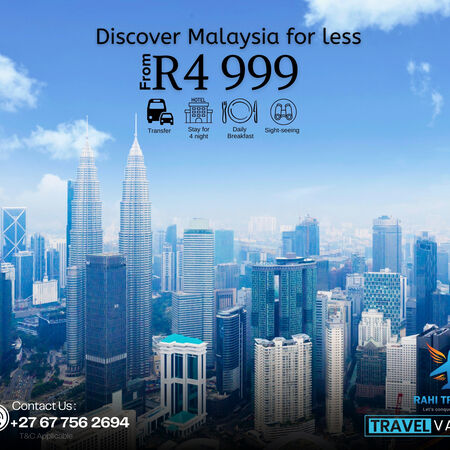 This Malaysia travel package is available from R4,999 and offers a budget-friendly way to enjoy the destination. The package focuses on essential travel comforts, combining accommodation, selected meals, sightseeing, and transfers for a well-rounded city escape. Ideal for travellers looking for great value. Terms and conditions apply.