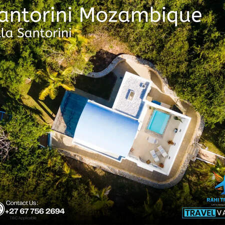 Santorini Mozambique is set in an elevated, private position commanding sweeping bay views, located a few kilometers north of the mainland coastal town of Vilanculos. The property features elegant interiors that reflect the space and flow of the surrounding natural environment. Accommodation includes five ocean-facing, air-conditioned en suite bedrooms with private balconies in the main villa, a two-suite exclusive villa, and a three-suite exclusive villa. Each exclusive villa offers its own private pool, patio, and dining area, creating an intimate and refined coastal escape.