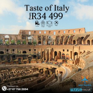 The Taste of Italy travel package is available from R34 499 and offers a well-rounded European getaway. This package combines essential travel services to ensure a smooth and enjoyable travel experience.