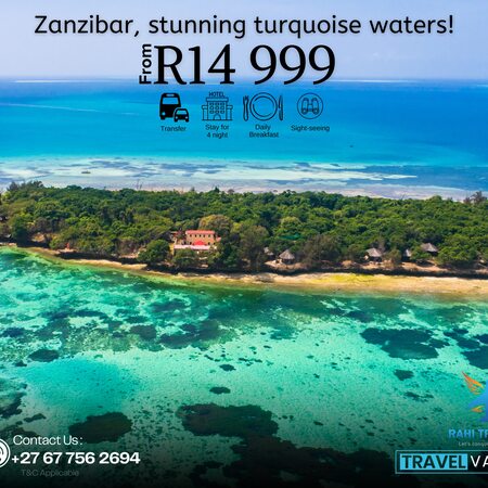 This travel deal invites you to explore the breathtaking shores of Zanzibar. Starting from R14,999, the package features a 4-night stay in this world-renowned destination, complete with essential transfers and daily breakfast to start your mornings right.